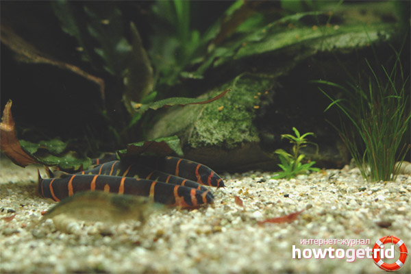 Acantophthalmus - poisson qui mange presque tout. Pour cette raison, ils sont faciles à garder dans l'aquarium.