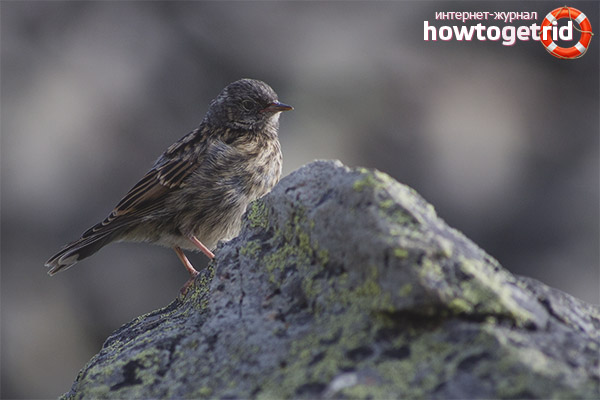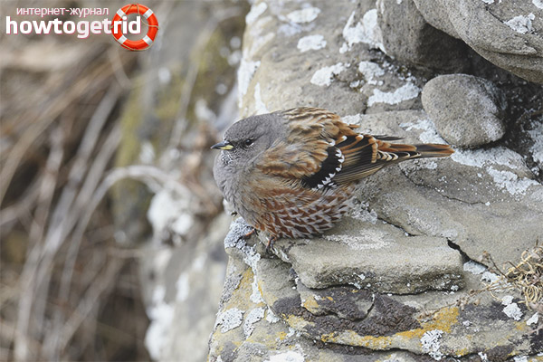 L'accenteur d'oiseau alpin est petit, comme tous les autres représentants des Passeriformes. En latin, le nom de cette espèce ressemble à Prunella collaris.