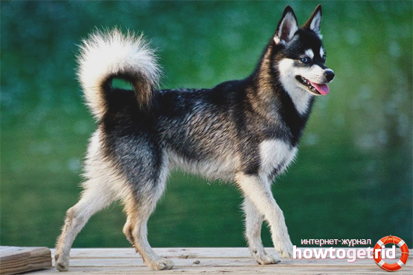 - La queue. Lorsque le chien est agité, la queue tourne en un ou deux anneaux. Si le chien est dans un état détendu, il l'abaisse ou le soulève légèrement. La queue est basse, la base est solide. Quand il monte, il se tient à angle droit par rapport au corps, peut s'incliner d'un côté. Par avantage, on entend une caractéristique lorsque l'extrémité de la queue est peinte dans un ton sombre. Si le chien est enjoué et agité, la queue doit atteindre le dos et le toucher.