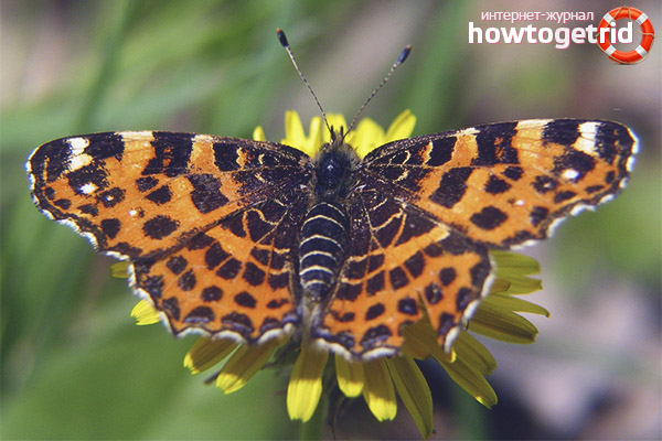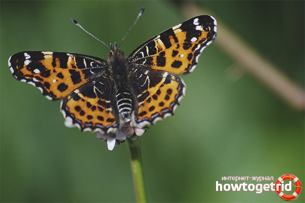 - Génération de printemps. Il ne diffère pas dans ces grandes tailles et couleurs d'ailes. Au-dessus, ils ont des tons jaune-orange ou rouges, des taches noires sont situées à l'arrière-plan. Ci-dessous sur un fond orange se trouve un motif blanc, très semblable à un filet; Cela vaut la peine de plier les ailes, et il est presque invisible.