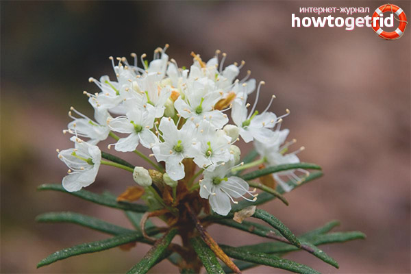 Maîtresse sur une note! Après avoir déposé des choses dans la commode avec des feuilles séchées et des fleurs de Ledum, vous pouvez vous débarrasser définitivement de la teigne. La fumigation de la pièce éliminera également les insectes et les puces, car il s'agit d'un bon agent insecticide.