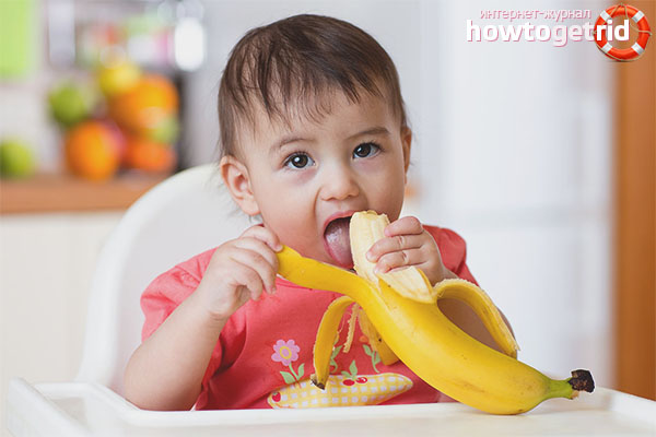 - Si vous suivez les statistiques moyennes, une réaction inattendue se produit rarement lors de l'introduction du fœtus présenté dans l'alimentation. Pour cette raison, les experts autorisent l'ajout de banane aux aliments complémentaires à partir de six mois.