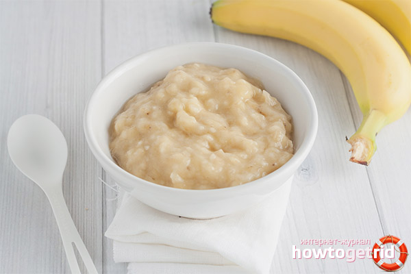 - Si vous allez initier un bébé à une banane pour la première fois, il est fortement recommandé de diluer la purée de pommes de terre en quantités égales avec le mélange alimentaire ou le lait maternel. Grâce à cela, l'enfant va essayer un nouveau plat avec un goût déjà familier. De plus, la consistance sera assez liquide.