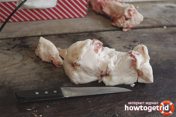 - Varices. De fines sections de graisse sont appliquées sur les zones touchées, fixées avec un bandage. L'effet sera visible un mois après le changement quotidien de pansement.