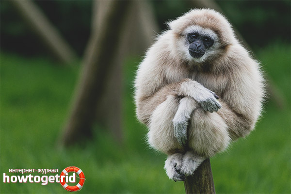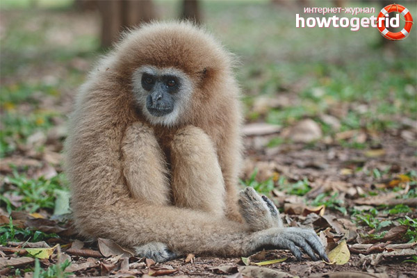 Il convient de noter l'aspect somptueux des gibbons, l'image de l'animal est extraordinaire: elle commence par le noir et se termine par une teinte sableuse. Les membres et les poils clairs qui tombent sur le visage de l'animal sont particulièrement distingués.