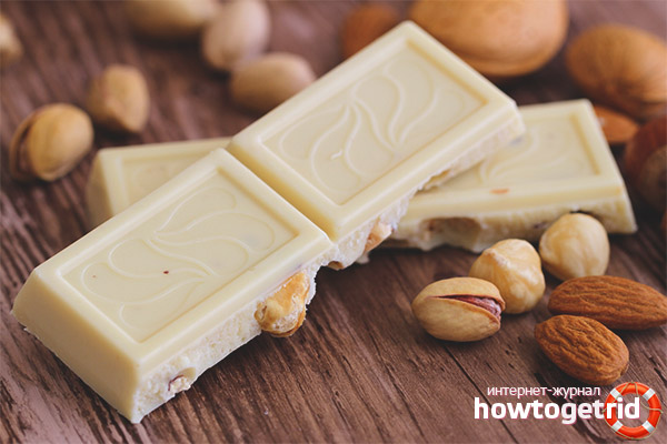 Ne vous laissez pas emporter par ce dessert, sinon vous obtiendrez non seulement de l'obésité, mais aussi un trouble métabolique. Ne buvez pas de chocolat blanc si vous avez une acidité élevée, du diabète ou si vous êtes allergique aux composants. Mais la version blanche du chocolat est une aubaine pour ceux qui sont allergiques au cacao. Il est particulièrement déconseillé d'être emporté par ce produit aux personnes menant une vie passive, ainsi qu'aux personnes sujettes à l'obésité.