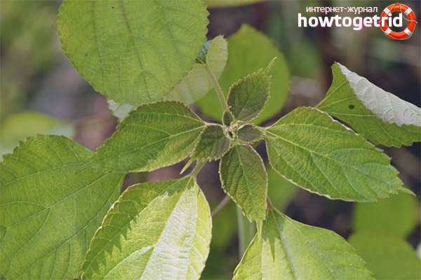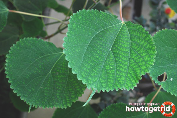 - Grande feuille. Cette plante conserve toujours sa couleur verte dans toutes les conditions. Il pousse et se développe sous la forme d'un arbre de 4 mètres de haut, moins souvent 5. Les tiges changent de couleur en brun avec l'âge. Les feuilles sont assez grandes, rugueuses au toucher. Les fleurs ressemblent à des épis de maïs. La couleur des fleurs est pâle.