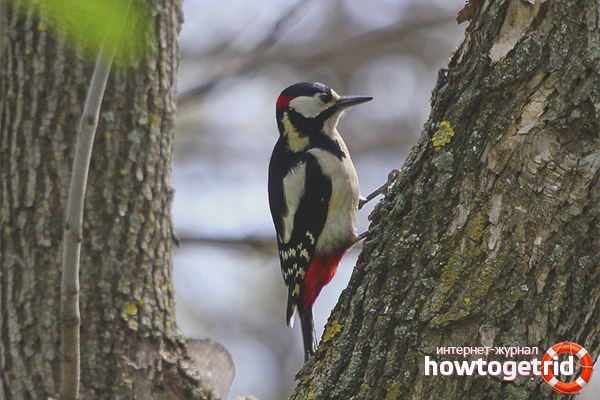 - Mais nous ne reculerons pas devant l'essentiel. Les pics obtiennent ainsi de la nourriture. Lorsqu'ils frappent l'écorce, divers insectes rampent hors des fissures. Cet oiseau les attrape et mange en conséquence. Certaines personnes plus intelligentes savent où frapper pour obtenir de la nourriture directement de l'écorce. La base de l'alimentation en été est de petites chenilles, coléoptères.