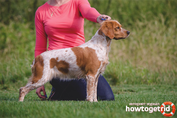 - Griffes. L'épagnol breton passe beaucoup de temps dans la nature, court activement et creuse dans la boue, de sorte que les griffes grincent seules. Cependant, il ne faut pas oublier les griffes sur les ergots, qui doivent être retirées avec une lime.