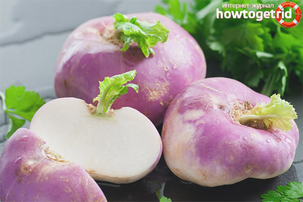 - L'application a trouvé non seulement la chair des racines, mais aussi le liquide (jus). Les matières premières fraîchement pressées ont des propriétés bactéricides et anti-inflammatoires. La désinfection de la cavité buccale, la lutte contre les saignements des gencives et les caries. Le rutabaga est beaucoup plus utile que le radis à cet égard.