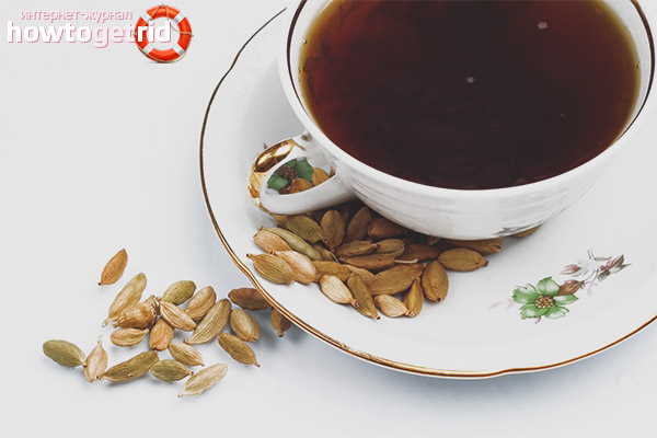 A boire et une simple décoction sans feuilles de thé. Sur un verre d'eau bouillante, 1-2 boîtes de cardamome sont brassées avec l'ajout d'autres épices: gingembre, cannelle, anis étoilé, menthe. Cette teinture peut être bue non seulement chaude mais aussi froide. Le thé aidera à soulager les maux de tête, les nausées et à apaiser avant le coucher.