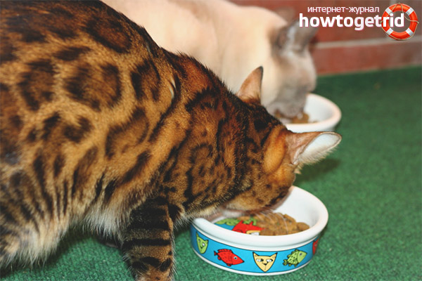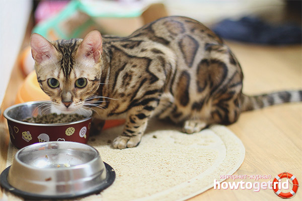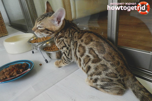 - Il a déjà été mentionné que l'alimentation de l'animal de la race actuelle peut être effectuée en utilisant des blancs sous forme d'aliments secs ou humides ou d'aliments faits maison. Les différends concernant le choix dans une direction ou une autre se poursuivent ce jour et ne vont pas disparaître. Cependant, les meilleurs vétérinaires du monde ont convenu que l'achat de nourriture pour les Bengalis était encore mieux. Cependant, ils ne sont pas sans caractéristiques négatives.