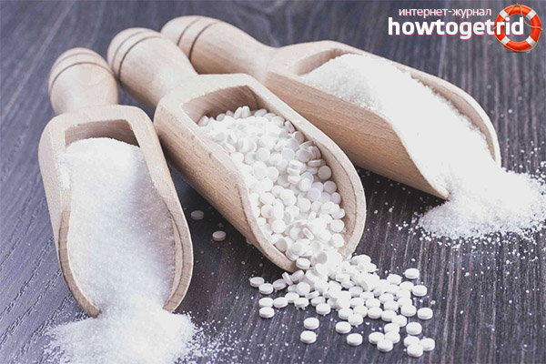 - Si vous ne saviez pas auparavant comment remplacer le sucre classique par une telle maladie, vous devez faire attention à une substance sous forme de saccharine. Si une composition similaire est dissoute dans de l'eau bouillante, elle perd complètement son goût.