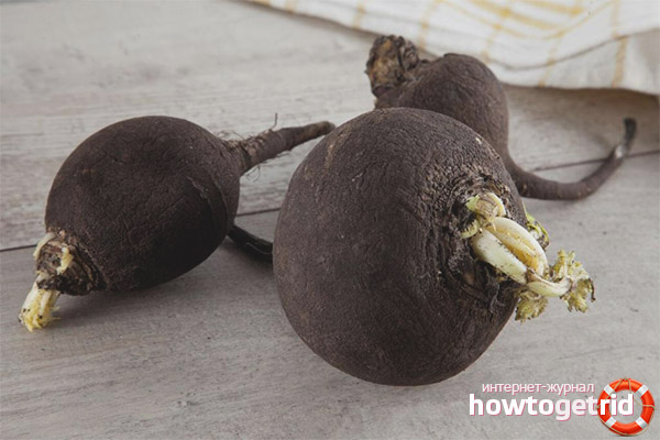Ce légume sans prétention ne nécessite pas de composition particulière du sol et d'alternance stricte des cultures de jardin, tolère les températures extrêmes et la sécheresse, devenant seulement plus saturé par un manque d'humidité et acquérant un goût brûlant. Les huiles de moutarde dans la pulpe et les feuilles le fournissent. Les sommets sont très similaires aux radis, la chair blanche juteuse avec une odeur spécifique est cachée derrière la peau noire.
