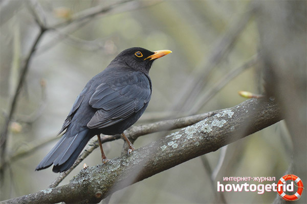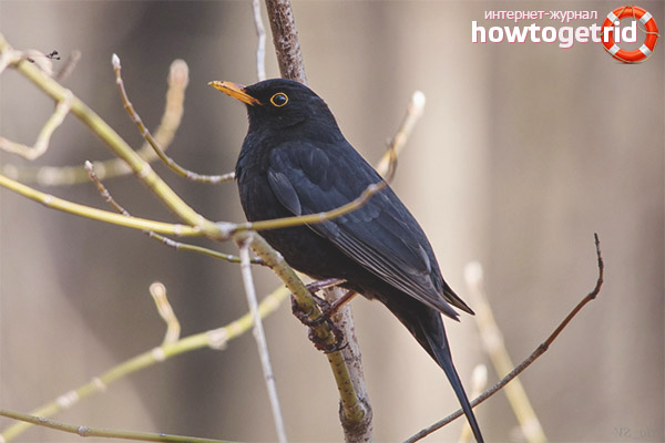 - Les oiseaux n'ont pas vraiment besoin d'eau, ils essaient d'obtenir tout le liquide avec de la nourriture. Lorsque la sécheresse est observée en raison des conditions météorologiques, au lieu des vers, les oiseaux s'appuient sur les chenilles, les pucerons, les baies et les fruits. Les merles noirs ne ramassent pas le sol à la recherche de nourriture, mais le ramassent au sol.