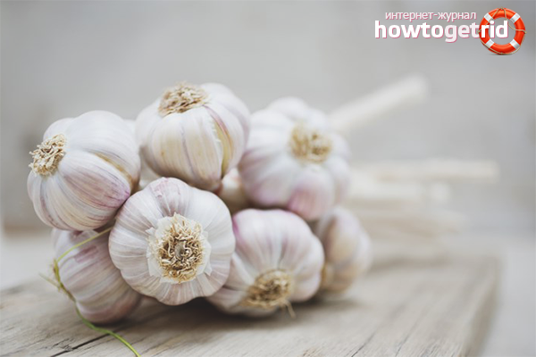 - Peler quelques gousses d'ail, pousser le produit à travers une presse spéciale à trous. Mélanger la bouillie préparée avec 30 gr. miel de fleur.