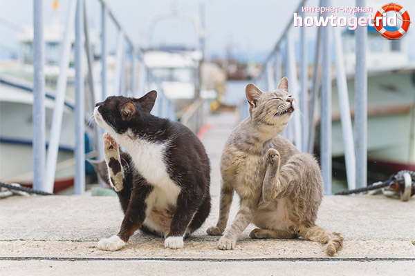 Dans le traitement de la gale, un traitement complexe doit être utilisé. C'est-à-dire, utilisez des onguents qui font face à la destruction des tiques, des solutions externes, des médicaments anti-inflammatoires et donnez à l'animal les vitamines nécessaires. Dans de tels cas, le vétérinaire prescrit le cours nécessaire, que le chat malade doit respecter d'une semaine à trois (en fonction de la gravité de la gale).