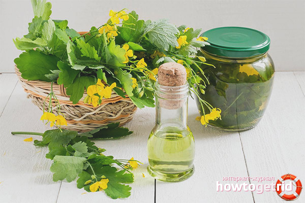- Pour restaurer la force, renforcer le système immunitaire, soutenir le système nerveux, vous avez besoin d'un outil efficace. En médecine populaire, ils utilisent depuis longtemps la perfusion de chélidoine pour éliminer ces problèmes. Ce sera bien si vous faites une infusion à partir d'une plante fraîche, alors toutes ses propriétés curatives entreront en action. Mais la chélidoine sèche ne sera pas moins utile. Pour la préparation de l'infusion d'eau, une plante fraîche est déterrée. Il doit y avoir une racine, puis elle est soigneusement lavée et finement coupée. Ajouter à une capacité de 500 grammes. La plénitude devrait être de moitié. Le reste du réservoir est versé avec de l'eau bouillante. Le pot est enveloppé d'une serviette et laissé refroidir. Vous ne pouvez pas conserver la perfusion pendant plus de trois jours. Si l'infusion sera faite d'herbe séchée, vous devez remplir le récipient d'un quart.