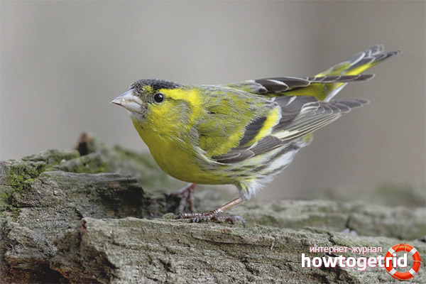 - Tarin de pin. Cette espèce est commune en Amérique du Nord, également dans ses régions montagneuses. Les autres sous-espèces de Chizhik se distinguent par une couleur moins brillante et prononcée. Traditionnellement, ces oiseaux ont un plumage brunâtre et jaune.