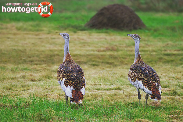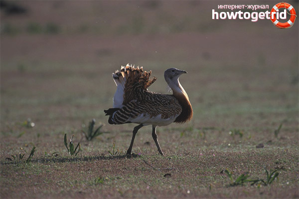 Les outardes sont des représentants uniques des oiseaux. S'ils remarquent le danger pendant l'éclosion de la progéniture, l'oiseau fait semblant d'être boiteux et commence à conduire le prédateur sur le côté. Après cela, l'individu tente d'échapper au danger. Les oiseaux en question sont devenus rares et sont au bord de l'extinction. Les braconniers continuent de les chasser.