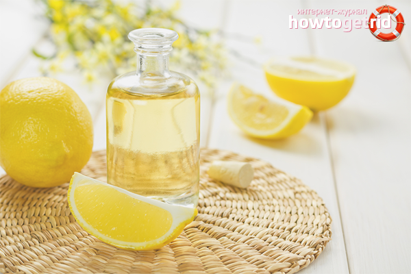 - Pour créer un remède efficace, ajoutez 12 ml. la composition habituelle (huiles végétales, crème pour le corps) 3 gouttes d'éther de citron. Remuer les composants, frotter le mélange homogène dans les zones à problèmes jusqu'à absorption complète.