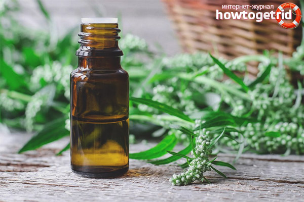 L'efficacité de l'huile d'absinthe réside également dans son utilisation externe. Dans ce cas, une double thérapie est effectuée - l'effet de contact direct de la composition et de l'aromathérapie, qui vous permet de normaliser l'état psycho-émotionnel d'une personne.