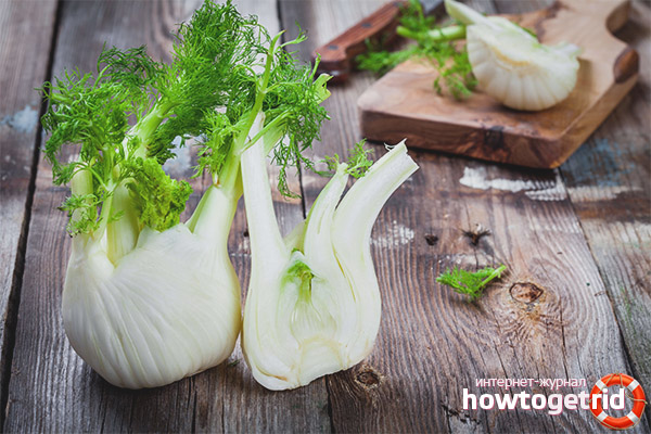 Les huiles aromatiques sont présentes dans la composition du fenouil, par conséquent, lorsqu'elles sont ingérées, le bon fonctionnement du système digestif du tractus gastro-intestinal est assuré. La survenue de processus inflammatoires dans l'estomac et le système digestif est évitée et tous les produits de l'alimentation seront correctement digérés sans inconvénient. Et donc, la satiété est maintenue pendant longtemps, ce qui est important avec une alimentation équilibrée.
