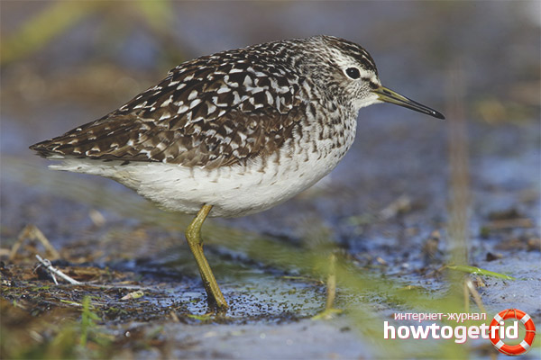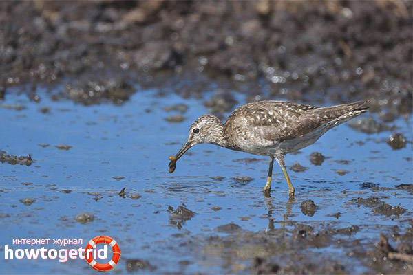 - Les longues jambes ne sont pas trop claires, mais pas sombres. Ils sont plutôt jaunâtres ou olive, fanés. Lorsque l'oiseau est en vol, ses pattes dépassent du bord de la queue. Quant à la nuance des yeux, elles sont brunâtres. Le bec est sombre, plutôt noir. Entre le majeur, il y a une membrane.