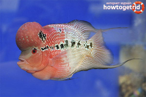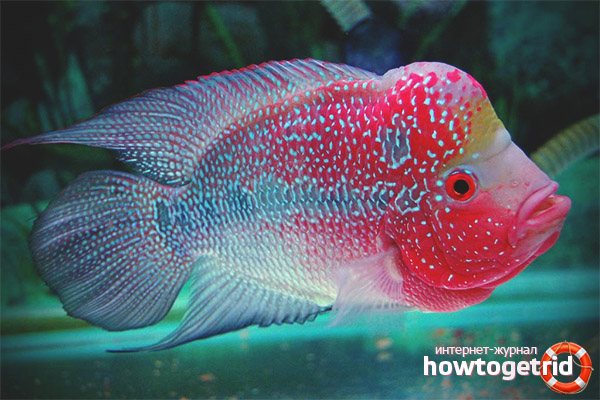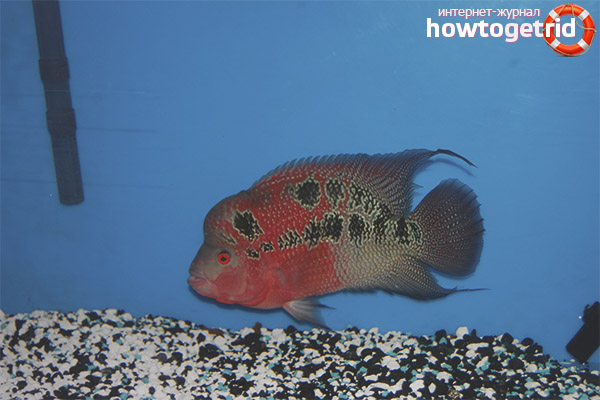 - Comme les autres cichlidés, les cornes de fleurs ne nécessitent pas de soins scrupuleux et de délices particuliers dans leur contenu. Par conséquent, nous pouvons dire que les poissons sont relativement sans tracas, même pour un débutant. L'essentiel est que l'eau réponde à tous les critères, alors les animaux ne se sentiront pas mal et feront preuve d'agressivité.