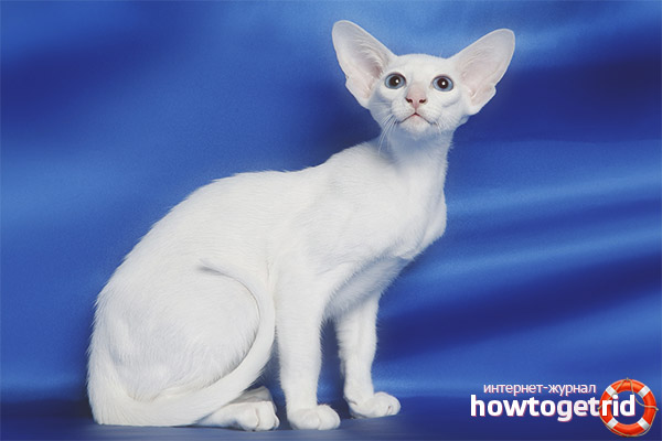 Blanc étranger (étranger blanc) - c'est un chat blanc étonnant qui nous est venu d'Angleterre. Le chat est très similaire à la race siamoise en raison de son pelage lisse et court. Forin White est l'un des rares chats de couleur blanche aux yeux bleus qui ont une audition normale. Par exemple, la plupart des Perses et des Angora turcs sont tout simplement sourds, cette déviation génétique a provoqué une interdiction d'élevage de ces chats dans certains pays. L'éleveur britannique a décidé de modifier le patrimoine génétique et de faire ressortir un chat blanc aux yeux bleus, mais avec une audition normale. Cela a pris plusieurs années. Par essais et erreurs, il a été constaté que des chats siamois aux yeux bleus et des chats de cour blanc comme neige donnent une progéniture sourde. Mais si vous croisez un Siamois avec un chat balinais, la moitié de la progéniture a commencé à correspondre à la norme. À l'avenir, la race blanche forin est devenue un succès, les chatons étaient non seulement en bonne santé, mais incroyablement beaux - blancs comme neige, à poils lisses, aux yeux bleus et à museau triangulaire.