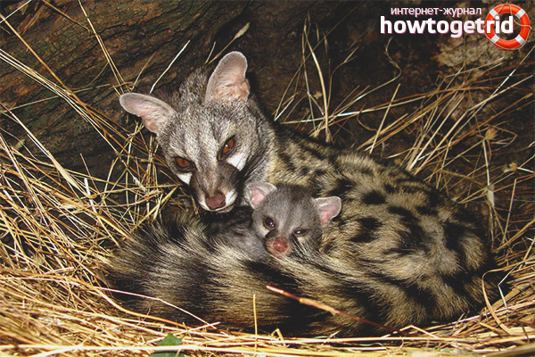 Genetta est un petit animal habile de taille moyenne, aux habitudes et ressemble à un chat. Appartient à la famille des wyvernes.