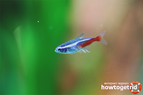 Un débutant est recommandé d'acheter des néons, car ils n'ont pas besoin d'être très soigneusement entretenus. Les poissons peuvent rester dans n'importe quel aquarium, même un vaisseau miniature. Cependant, les poissons ne s'adaptent pas très bien aux changements soudains, par conséquent, ils ne devraient pas être immédiatement lancés dans un nouvel aquarium. Vous devez d'abord attendre que tous les paramètres soient stabilisés, puis seulement procéder à la pendaison de crémaillère.