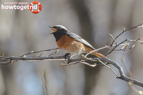 Pendant la saison froide, les extrémités des plumes du mâle deviennent blanchâtres. Je voudrais noter que le rougequeue du jardin est un oiseau plutôt actif et sociable qui est constamment en mouvement.