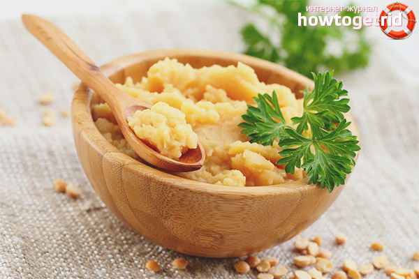- La bouillie de pois se distingue par des enzymes antivirales, par conséquent, elle prévient les maladies oncologiques et cardiovasculaires.