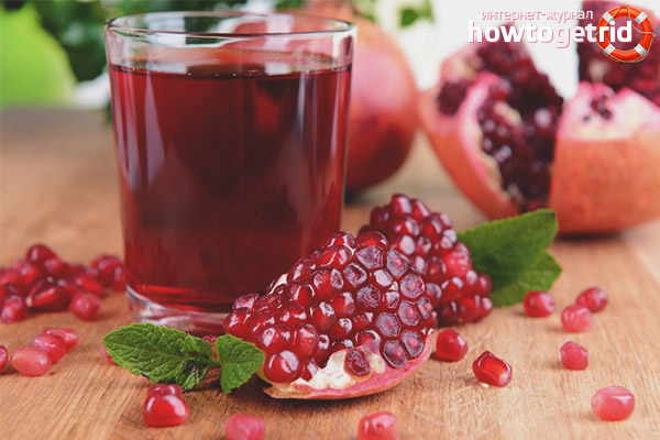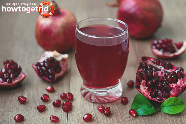 - L'effet positif n'est pas l'apparence. Le jus de grenade peut être utilisé pour nourrir, hydrater et tonifier la peau. Grâce à l'effet antiseptique, les boutons et les dermatoses disparaissent, le teint s'améliore, les taches de rousseur et les taches de vieillesse sont blanchies. Le nectar peut être frotté dans les zones vulnérables (haut de la poitrine, abdomen), ce qui réduira le risque de vergetures et d'affaissement.