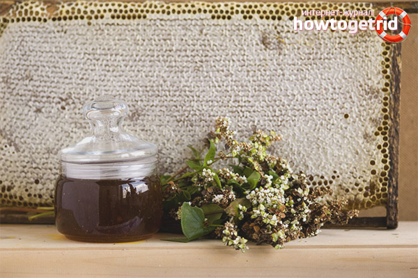 Le produit de l'apiculture à partir des inflorescences de sarrasin a ses propres caractéristiques. Il a un effet diaphorétique, il doit donc être pris à haute température. Un antiseptique naturel est capable de lutter activement contre le processus inflammatoire et infectieux et a un effet tonique.