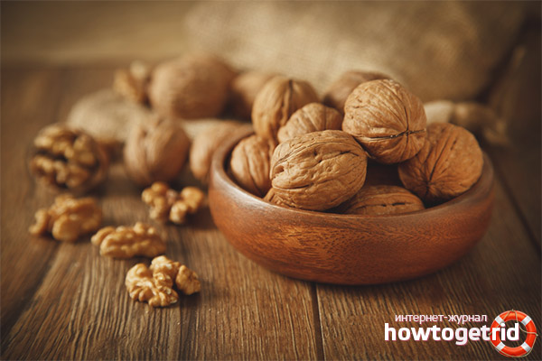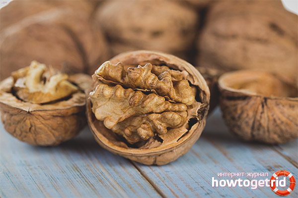 - Les fibres alimentaires normalisent le travail du tube digestif, balayant doucement les produits de décomposition et la stagnation de leurs parois. Les noix sont recommandées pour être consommées avec une tendance à la constipation et à d'autres problèmes associés aux intestins.