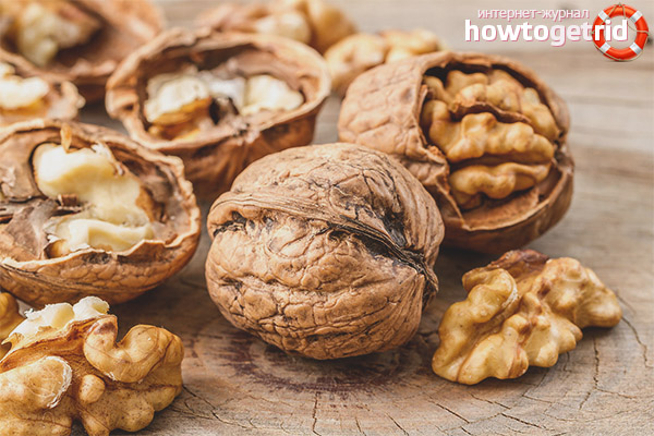- Les matières premières peuvent être dangereuses pour le corps dans certains cas. N'oubliez pas que les noix appartiennent à la catégorie des produits allergènes. Dans ce cas, il peut provoquer une forme assez sévère d'une telle pathologie.