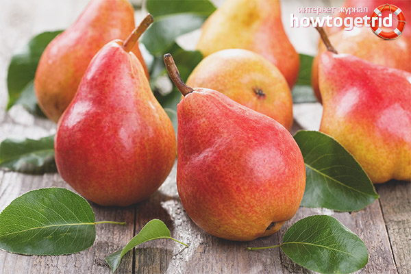 - La poire nettoie parfaitement le corps, étant donné que les fruits sont faibles en calories, ils aideront à se débarrasser des kilos en trop. Pour ce faire, vous devez manger 1,5 à 2 livres de fruits frais deux fois par semaine. Afin de ne pas provoquer de formation de gaz dans l'intestin, vous pouvez laisser légèrement tomber le fruit avant utilisation.
