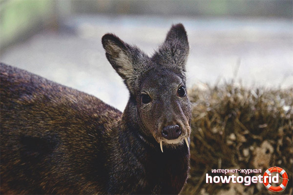 C'est ce cerf qui a été considéré comme un vampire pendant une longue période, car les gens croyaient qu'avec l'aide de crocs il suce le sang de sa victime. Si vous traduisez le nom de l'espèce de la langue grecque, alors nous pouvons littéralement dire qu'il s'agit de "porter du musc".