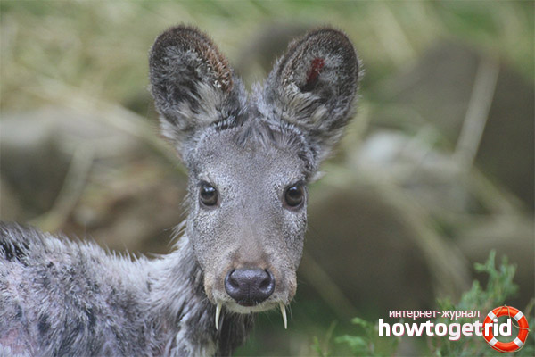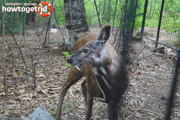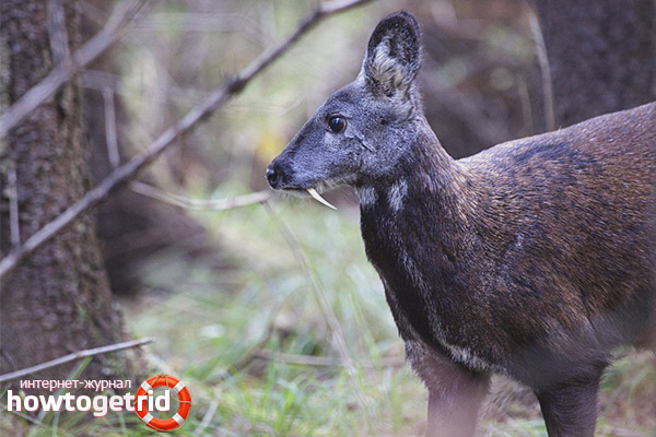 - Les mâles ont une glande dans la cavité abdominale, ce qui aide à développer une sécrétion avec une odeur musquée. Les sabots sont affinés, pointus, peuvent être écartés assez largement. La fourrure se casse rapidement, mais elle est dense et allongée. Il est pigmenté dans un ton brunâtre ou brunâtre.