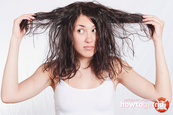 - Soins appropriés L'utilisation de fonds affectant les cheveux doit être minimisée. Une exception ne peut être que les cosmétiques spéciaux conçus pour les cheveux gras. Vous ne pouvez pas utiliser de produits qui restent sur les cheveux et ne se rincent pas.