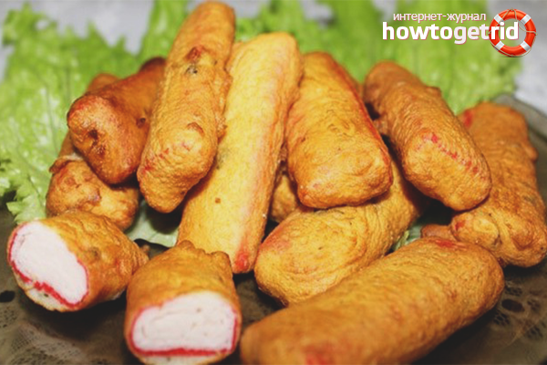- Les bâtonnets de crabe eux-mêmes sont très savoureux et juteux. Et si vous les faites cuire dans une pâte, même les enfants ne refuseront pas un tel apéritif. Pour faire de la pâte, nous avons besoin de quelques œufs, du sel muet et de la farine. Mélanger les aliments jusqu'à consistance crémeuse. Trempez le bâtonnet de crabe dans la masse et faites-le frire dans de l'huile végétale chaude. Servir les bâtonnets de crabe dans une pâte avec n'importe quelle sauce.