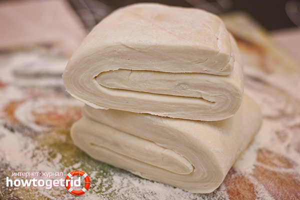 - Le nombre de couches est particulièrement important. Plus il est grand, plus les produits de boulangerie résultants seront mous, plus riches et plus nutritifs. En règle générale, la pâte à levure a 30 à 40 couches, tandis que pour une composition sans levure, l'indicateur varie entre 220 et 230 couches.