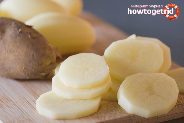 - Pommes de terre fraîches. Le jus de pomme de terre frais est un médicament unique qui peut stimuler la régénération de la peau. Pas étonnant que le jus de pomme de terre soit utilisé dans les masques cosmétiques contre les rides. Pour éliminer la bosse, l'enflure, les ecchymoses ou le compactage sous la peau, râper les pommes de terre fraîches sur une râpe et appliquer la pulpe sur la zone affectée. Si vous faites une compresse similaire toutes les 3 heures, le lendemain, il n'y aura aucune trace d'œdème.