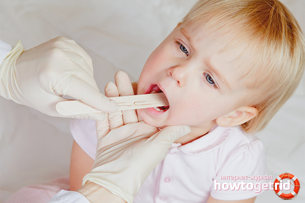 - Un des premiers signes d'un mal de gorge est un mal de gorge. De plus, si avec une simple rougeur, un léger chatouillement se fait sentir, puis avec une amygdalite purulente, l'enfant ressent une douleur insupportable, il lui est difficile d'avaler, de manger, de boire et de parler. Tout contact des amygdales malades avec d'autres parties de la cavité buccale entraîne un inconfort sérieux.