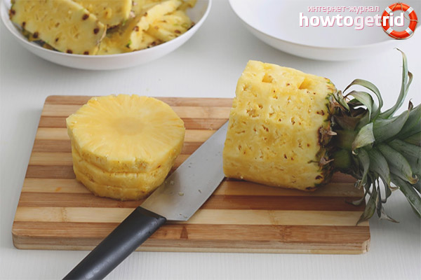 - Si vous avez besoin de cubes d'ananas pour la salade ou les collations - vous pouvez couper la chair en petits morceaux, puis les hacher.