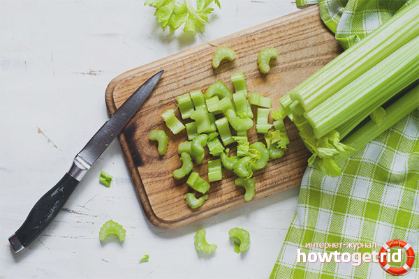 Le céleri peut être divisé en trois composants, qui sont consommés de différentes manières. Des herbes fraîches avec un arôme éthéré dur sont ajoutées aux salades et aux sauces, ainsi qu'aux plats de viande et de légumes. Pour ce faire, il suffit de rincer les verts sous l'eau, de sélectionner les feuilles fanées et jaunies - et de les envoyer au plat entières ou finement hachées.