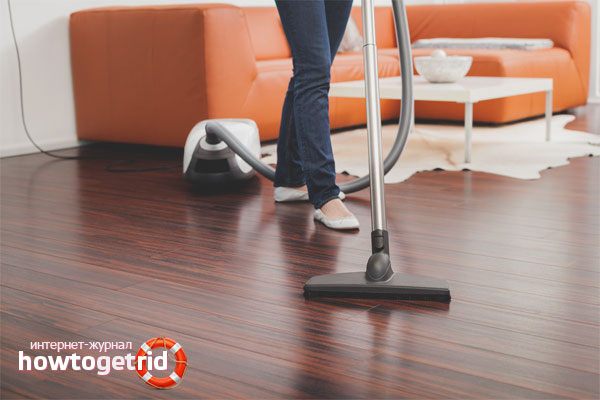 Vous pouvez bien sûr nettoyer le sol avec un aspirateur de lavage et essuyer soigneusement l'humidité restante. Mais cela compliquera considérablement le processus de nettoyage. La meilleure option est le traitement de surface avec un aspirateur conventionnel avec une buse douce, après quoi un nettoyage humide est effectué selon les instructions décrites ci-dessus.