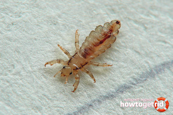 - Les poux de lin mesurent environ 2-3 mm. avoir un ventre allongé sans ailes. Les parasites qui vivent sur les vêtements et la literie sont difficiles à remarquer, car ils sont presque incolores (blanchâtres).